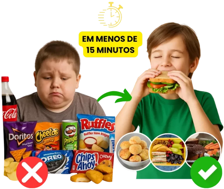 Faça versões saudáveis das comidas que seu filho ama. Sem açúcar, sem glúten e prontos em minutos. Assim, você mata a vontade dele de “besteira” sem sair da alimentação saudável.